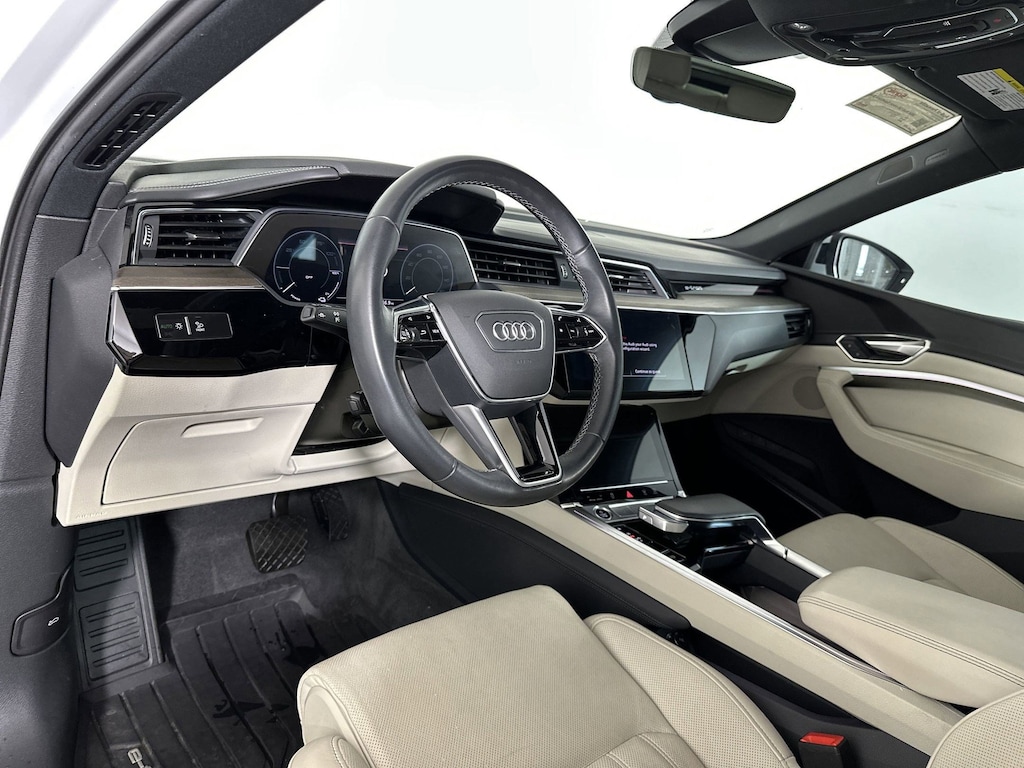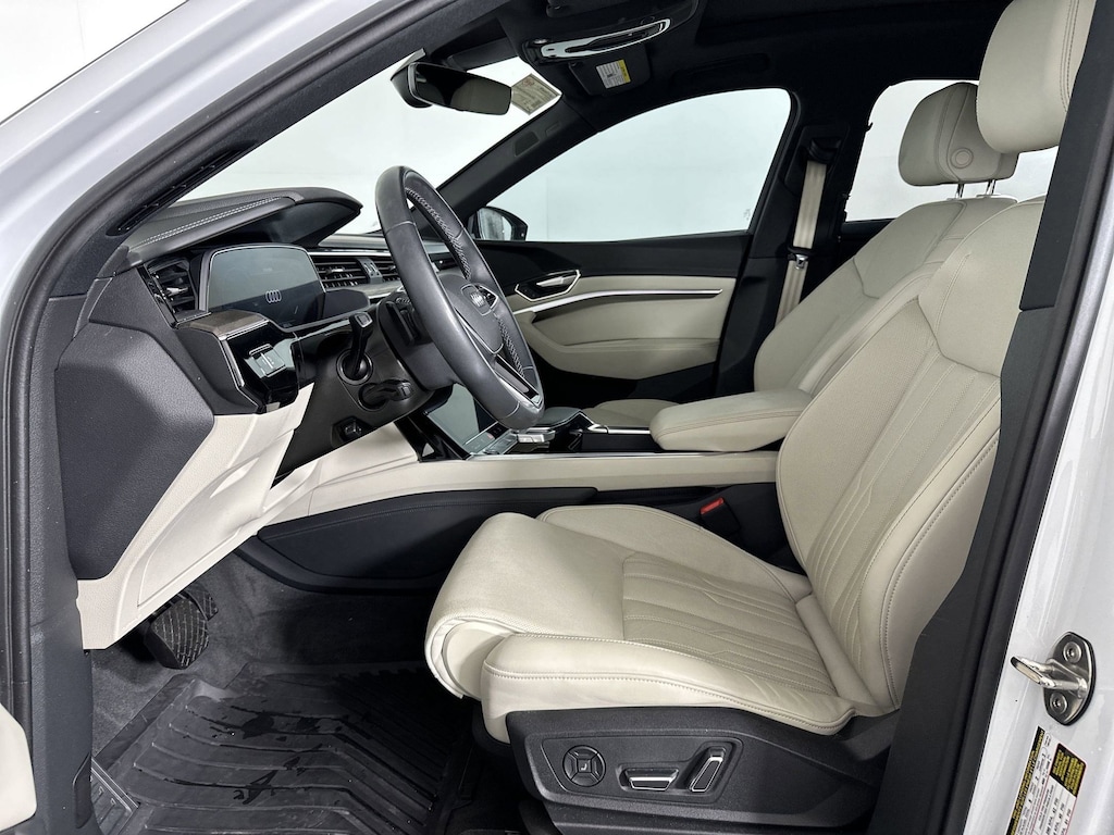 This Audi Q8 e-tron Sportback delivers a Electric engine powering this Automatic transmission. PRESTIGE PACKAGE -inc: glass-optic controls in black w/additional alu-optic interior elements, Digital Matrix LED Headlights, Front Passenger Seat Memory, Head-Up Display, Traffic Sign Recognition, Leather Trimmed Dash/Armrest/Center Console, Bang & Olufsen Sound System w/3D Sound, Top View Camera System, virtual 360 degree view, Heated Rear Seats, Intersection Assist, LED Interior Lighting Plus Package, multicolor, Power Soft-Closing Doors, Front Passenger Power Lumbar, Wireless Phone Charging Pad, Animation for Headlights & Taillights, Single Frame Projector Lighting, Park Assist Plus, Dual Pane Acoustic Glass for Side Door Windows, Manual Sunshades for Rear Doors, GLACIER WHITE METALLIC, BLACK OPTIC PACKAGE -inc: High-Gloss Black Front Grille & Mask, High-Gloss Black Rear Diffuser Inlay, Wheels: 21" 5-Arm Aero Structure Design, Bi-color finish, Tires: 265/45R21 108H XL All-Season, High-Gloss Black Window Surrounds.