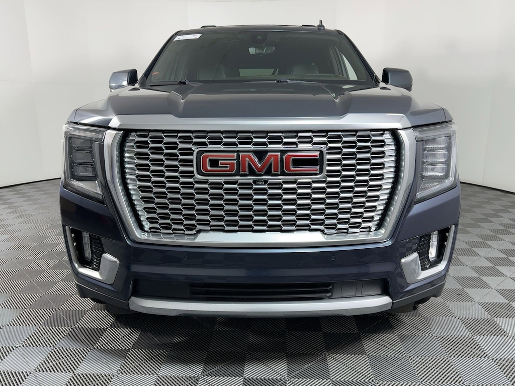 LICENSE PLATE FRONT MOUNTING PACKAGE (Included on orders with ship-to states that require a front license plate.), DENALI PREMIUM PACKAGE includes (CWN) Advanced Technology Package content, (C3U) Panoramic power sunroof, (B3L) power-retractable assist steps with perimeter lighting, (RPU) 22" bright machined aluminum wheels with premium paint and (SFE) wheel locks, LPO, ADVANCED SECURITY PACKAGE, BODY SECURITY CONTENT includes (UTR) self-powered horn, (UTV) interior movement sensors, (UTU) vehicle inclination sensors, (UTW) glass break sensors in rear quarter glass and liftgate window and door and liftgate lock shields , REAR CAMERA MIRROR, INSIDE REARVIEW AUTO-DIMMING WITH FULL CAMERA DISPLAY, REAR CAMERA MIRROR WASHER, REAR AXLE, 3.23 RATIO, LPO, WHEEL LOCKS (dealer-installed), GVWR, 7500 LBS. (3402 KG) (STD), ENHANCED AUTOMATIC EMERGENCY BRAKING, ENGINE, 6.2L ECOTEC3 V8 with Dynamic Fuel Management, Direct Injection and Variable Valve Timing, includes aluminum block construction (420 hp [313 kW] @ 5600 rpm, 460 lb-ft of torque [624 Nm] @ 4100 rpm) (STD), DENALI PREFERRED EQUIPMENT GROUP Includes Standard Equipment, DARK WALNUT/VERY DARK ASH GRAY, PERFORATED LEATHER SEATING SURFACES (1st and 2nd rows only.) (Interior color has lighter/darker two-tone effect.), DARK SKY METALLIC, ASSIST STEPS, POWER-RETRACTABLE WITH PERIMETER LIGHTING, ADAPTIVE CRUISE CONTROL, Wireless charging (Standard on vehicles built before 7-12-2021. Vehicles built on or after 7-12-2021, will have (00C) Not Equipped with Wireless Charging which removes Wireless Charging and its content. See dealer for details. The system wirelessly charges one compatible mobile device. Some phones have built-in wireless charging technology and others require a special adaptor/back cover. To check for phone or other device compatibility, see my.gmc.com/learnAbout/wireless-charging or consult your carrier.), Wireless Apple CarPlay/Wireless Android Auto, Wipers, front intermittent, Rainsense, Wiper, rear intermittent, Windows, power, rear with Express-Down.