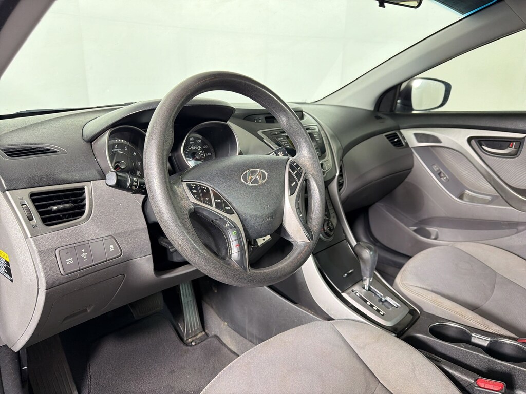 PREFERRED PKG -inc: 16" alloy wheels, front fog lights, steering wheel audio controls, Bluetooth hands-free phone system w/voice recognition, cloth insert door trim, sliding center armrest, illuminated visor vanity mirrors w/extensions, illuminated ignition, heated front seats, INDIGO NIGHT, GRAY, CLOTH SEAT TRIM, FIRST AID KIT, AUTO-DIMMING REARVIEW MIRROR W/HOMELINK, Windshield shade band, Warning lights -inc: oil pressure, battery charge, door ajar, seatbelt, low fuel, trunk lid open, brake, check engine, ABS, TPMS, ESC, water temp, Visor vanity mirrors, Vehicle stability management (VSM), Trunk lid inner cover. This Hyundai Elantra has a powerful Gas I4 1.8L/110 engine powering this Automatic transmission.