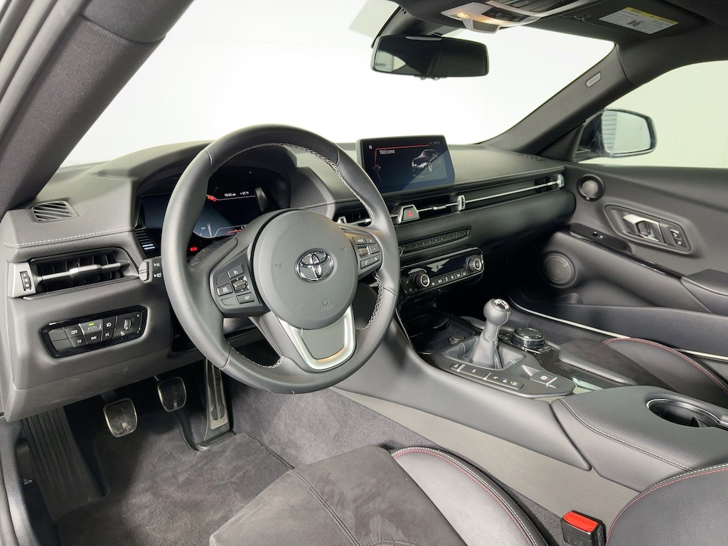 Wireless Phone Connectivity, Valet Function, Trip Computer, Tracker System, Tire Mobility Kit, Strut Front Suspension w/Coil Springs, Smart Device Integration, Side Impact Beams, Selective Service Internet Access, Seats w/Leatherette Back Material. This Toyota GR Supra has a powerful Intercooled Turbo Premium Unleaded I-6 3.0 L/183 engine powering this Manual transmission.